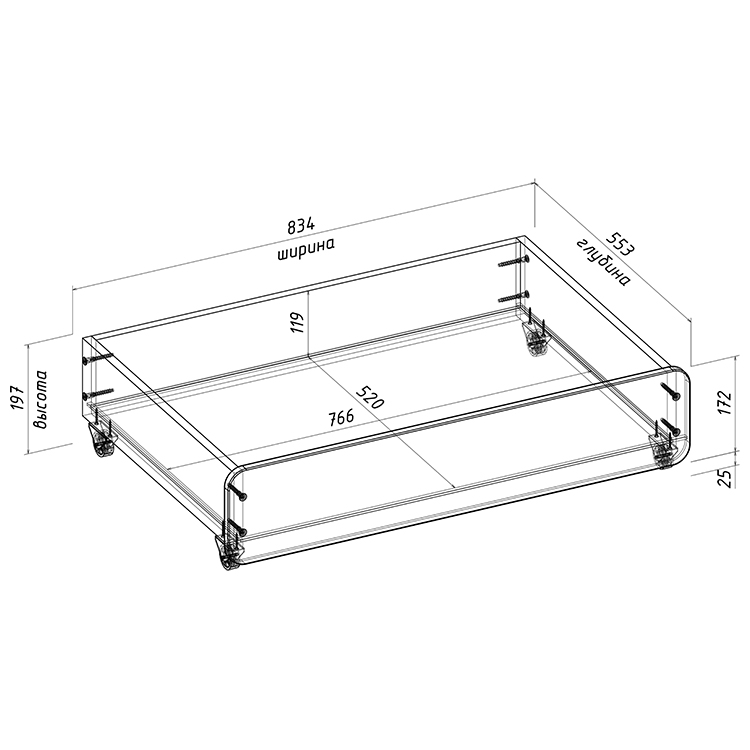 Длина/Ширина/Высота (мм) 834 × 553 × 197