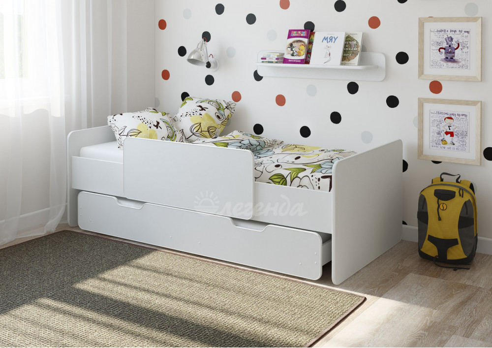 Классическая детская выдвижная кровать с бортиком Легенда 14 белая .